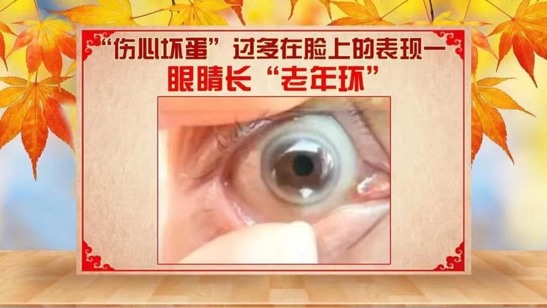 r血脂升高时,过多的胆固醇还会在角膜周围沉积形成白色的不透明环,这被称为角膜弓、老年环。